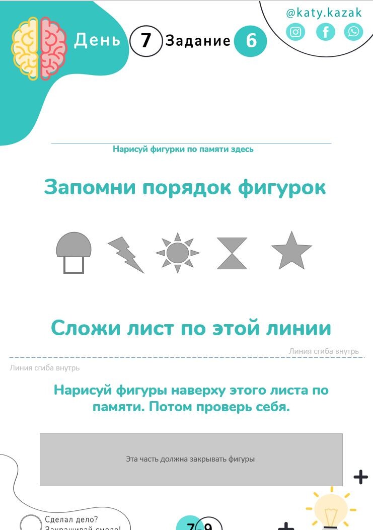 Рабочая тетрадь с увлекательными заданиями на 30 дней для тренировки когнитивных навыков в pdf формате. Для детей двух возрастов 5-7 и 7-9 лет.